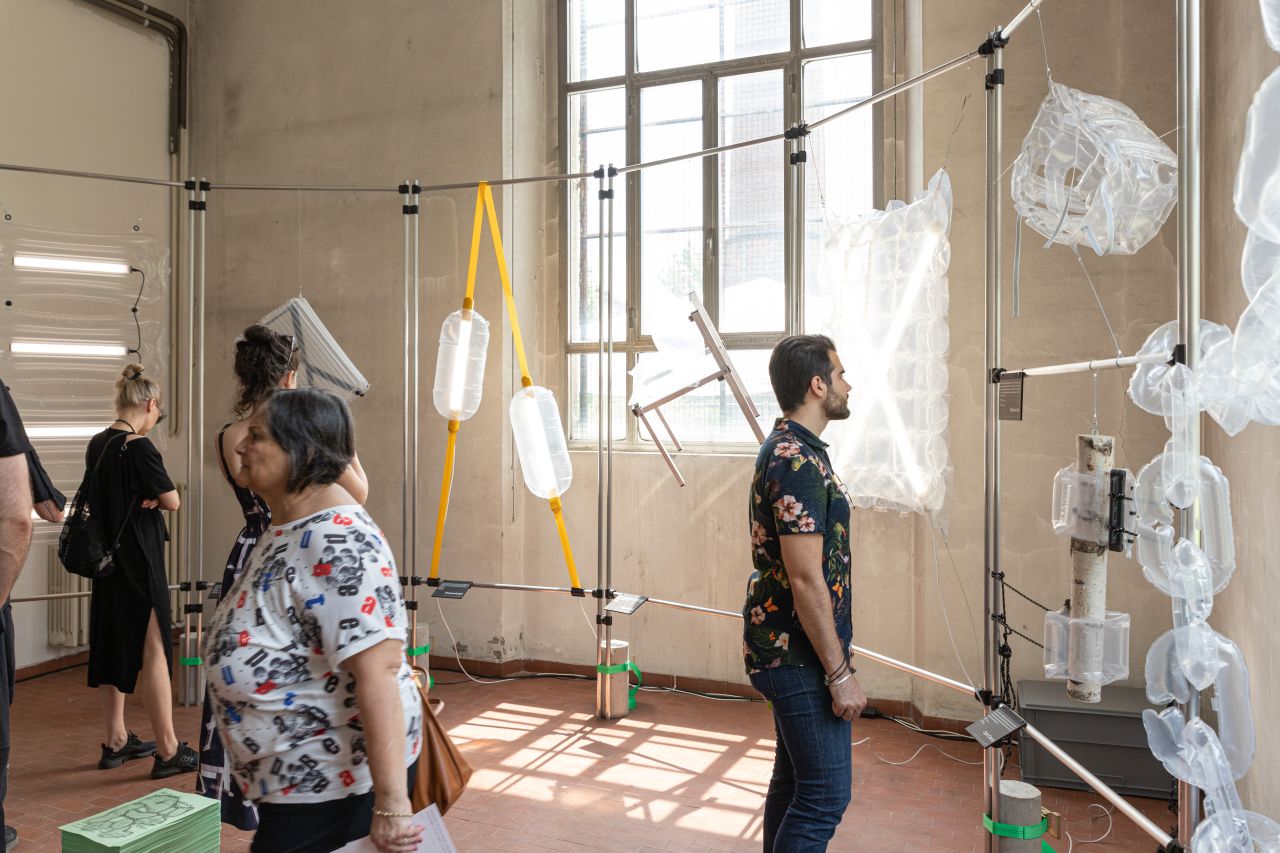 “Air Supply” is a group exhibition for Milan Design Week 2022, showing selected works by 17 students from MuID, the Industrial Design Department of the Muthesius University of Fine Arts and Design in Kiel, Germany. Each project is based on the idea to use air as the main material of construction.