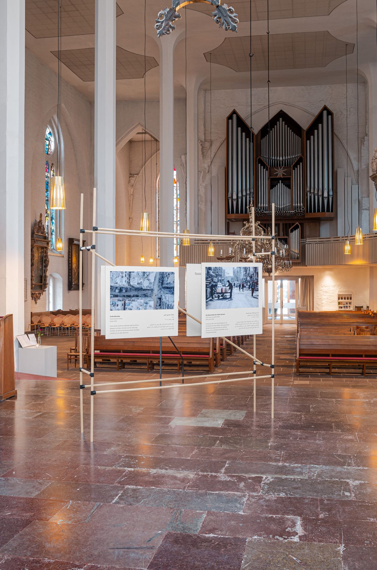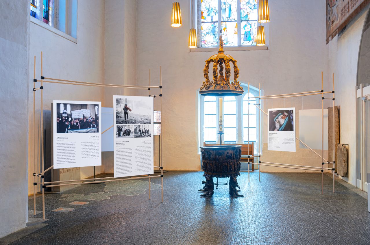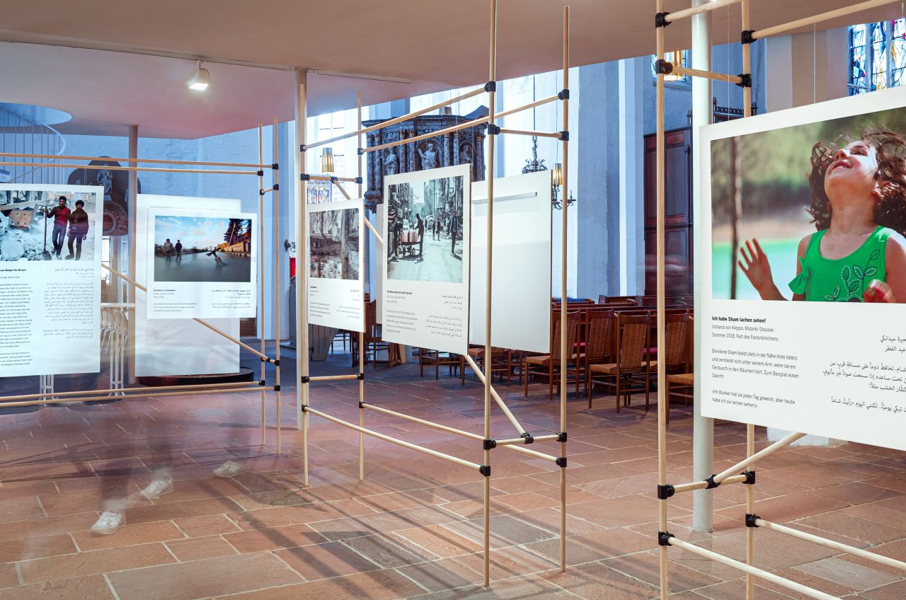 The exhibition "Von Herzen, aus Idlib" of the Heinrich Böll Foundation shows snapshots and stories from the destroyed Syria in the St. Nikolai Church in Kiel. The basis is the moving photo diary of the Syrian photographer Tim Alsiofi. In extraordinary pictures Alsiofi not only shows the horrors of war, destruction and death. His photographs and texts also tell of the beauty and joy of life. The texts for the exhibition were written by Hani Al Sawah, Syrian rapper and writer.