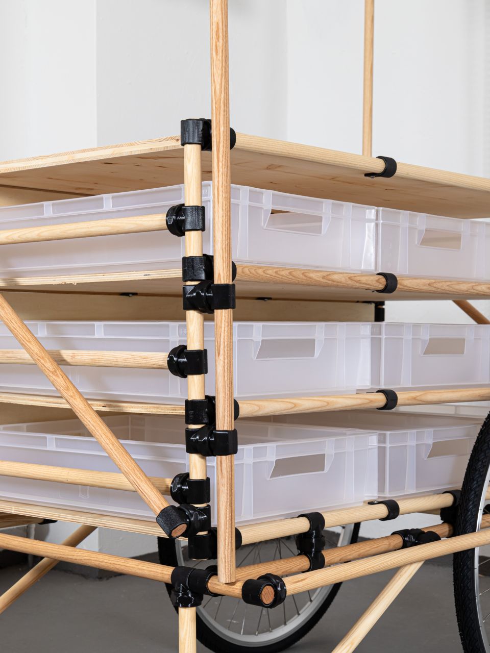 Ein mobiler Kioskwagen, gestaltet im Stil eines traditionellen japanischen Yatai, für die Siebdruckwerkstatt No Color in Kiel, Deutschland.